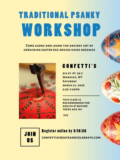 Workshops hosted by Creative Partners: Confetti's is unable to process payment, take registration or offer refunds for outside vendor classes. Please be aware of payment & cancellation policies of each individual vendor and contact them should you not be able to attend.